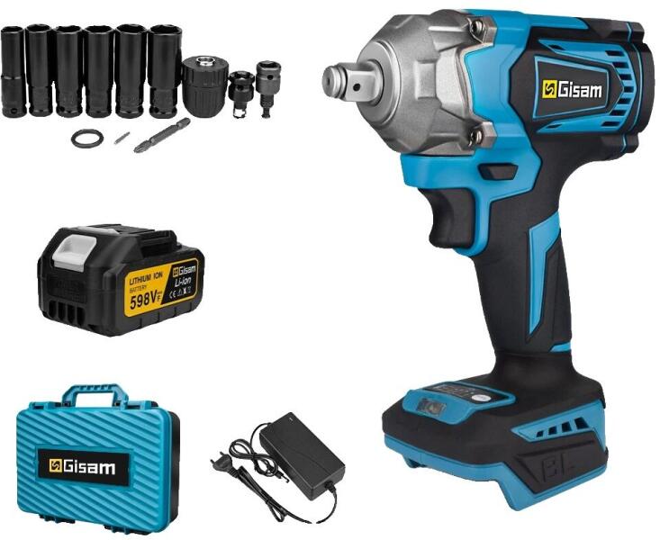 Vezeték nélküli elektromos ütközéskulcs, 1200N. m nyomaték, kefe nélküli motoros technológia, 1 akkumulátor 2. típusú